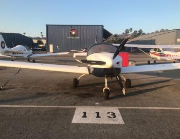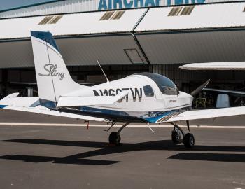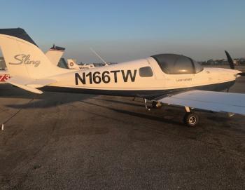 The Sling is a two-seat, low wing, all metal aircraft with tricycle landing gear made from composites. The aircraft is powered by an 80 hp Rotax 912 UL. It has a 3-bladed Warp Drive propeller. The cruise speed is 120 knots, climb rate 500 FPM, useful load 460 lbs., max range 850 NM and fuel burn around 4 gallons per hour.