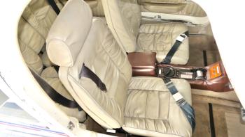 Interior: Good Condition 4-Place Tan Leather spacious seating Tan Carpet Headliner and Side Panels 4-Place Shoulder Harnesses Crew and Pax Arm Rests and Headrests Cockpit Center Console. Pilot Hinged Window Overhead Reading Lights Front and Rear Air Vents Exterior: Very Good Condition Overall Matterhorn White with Red and Navy Blue Accents Copilot/Pilot Doors with Side Steps. 12 Volt Auxiliary Power Port