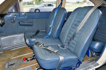 Interior: 4-Place Blue CLoth Seating Blue Side Panels Gray Carpets