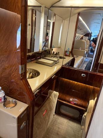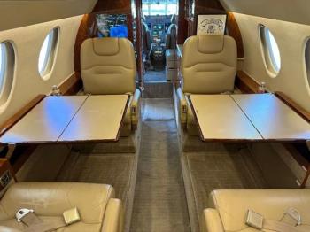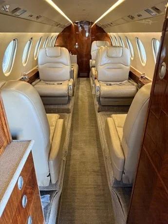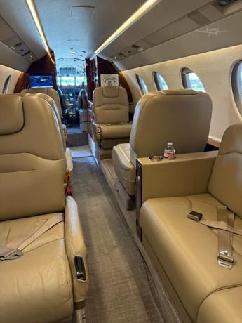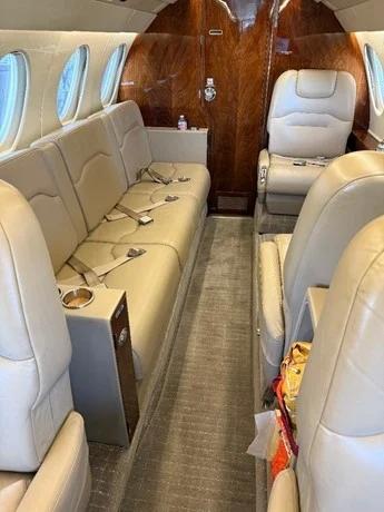 - 9 Executive Seats, 4 Fwd Club Seats, Aft 3 place couch, 2 Seats opposite couch in light Beige Leather. Aft Vanity with flush toilet.