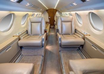 - Executive interior features Airshow 400, forward refreshment and rear lab.