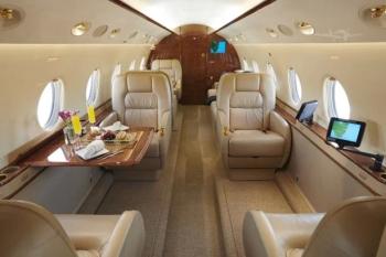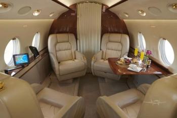 - 9 passenger interior with forward executive club, aft dual club seats across from a 3-place divan. 2018 refurbishment included new carpet, rugs, upper and lower sidewalls, table refinishing, cockpit seats and foam, stretch and re-dye of cabin seats. Neutral tan leather throughout with gold brightwork.