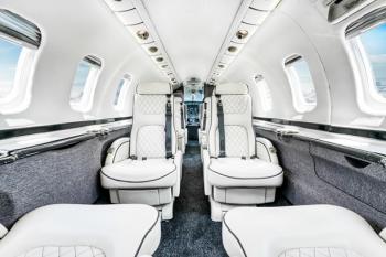 2 + 9, Eight Place Double Club Configuration, Four Fold-Out Tables, Fwd Galley w/Coffee Warmer, Airshow 400, Four 110V Cabin Power Outlets, Belted Lav