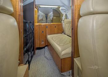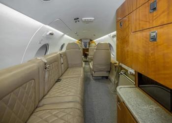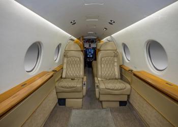 - 8 Place interior with 3 place Divan and Belted Lavatory. Seats: Moore & Giles Ascot Leather, color Buccaneer w/M&G Sierra welt cord accents. Crew seats: Garrett Leather Native Blackfoot w/ Gray Sheepskin. Window Lines: Tapis Ultraleather Ostrich, color China White. Headliner: Tapis Ultraleather, color China White. Sidewall Accent Panels: Moore & Giles Ascot Leather, Color Sierra w/lower trim: Townsend Nubuck Leather, color German Chocolate. Carpeting: Scott Group Ranger Road, color Sandstorm. Veneer: Quarter figured Walnut w/Gloss finish. Plating: Polished Smoke Nickel. Fire blocked Interior to meet FAR Part 135 Requirements - Custom Galley with Dual Mapco's. Flexjet Europe design theme: Ascot. August 2018.