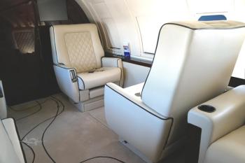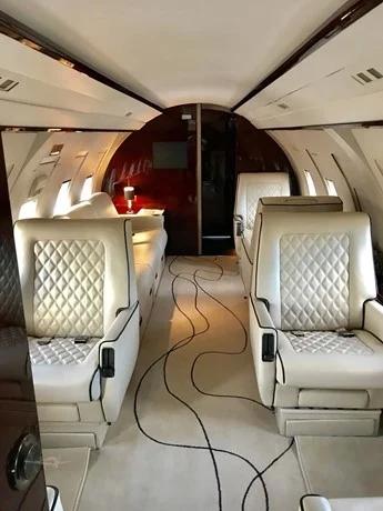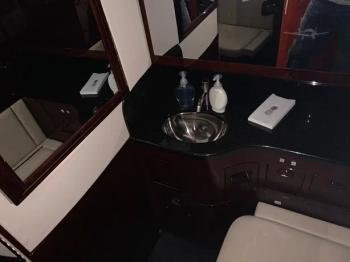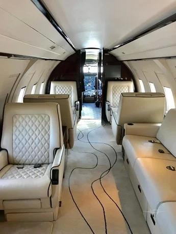 - nine (9) place with forward club seating, aft R/H 3 place divan, aft L/H side has two (2) facing seats, full aft lav, aft linen closet, forward galley area with hot and cold water, microwave, coffee maker, hot cup, warming oven, coat closet and certified jumpseat in L/H forward area of galley. ATG 5000 Gogo Talk and Text.
