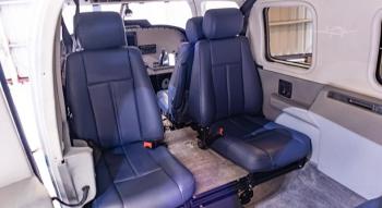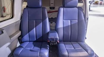 - New in 2021, 6-Place Club Seating in blue leather with gray carpeting and headliner