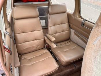 - Tan leather seats with headrests, matching side panels and carpet. Cream headliner. Sheepskins on front seats. Overall rated 9 out of 10.