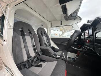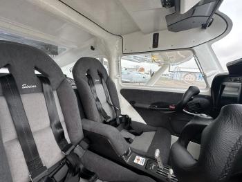 - 10/10 - Pilot & Co-pilot seats are light & dark two-tone gray fabric with 3-point safety harnesses. Wall to wall carpeting. Front anti fog ventilation. Front ventilation vents. Door locking system. Side turning vents on both door windows. Large luggage compartment with cargo net. Lockable doors on both pilot and co-pilot side. Steerable nose wheel. Aerodynamic carbon fiber wheel covers. Tie down rings on both wings and at fuselage rear