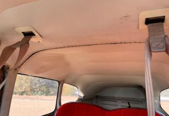 Red fabric and vinyl seats with matching side panels and carpet. Cream headliner. Overall rated 5 out of 10.
