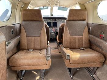 Seven passenger interior consisting of four-place club configuration, single aft forward facing seat and two crew seats. Dual executive writing tables. New interior 2024.