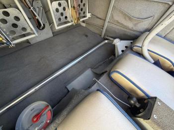- Beige Leather Seating with Blue Fabric Inserts and Coordinating Side Panels and Carpet